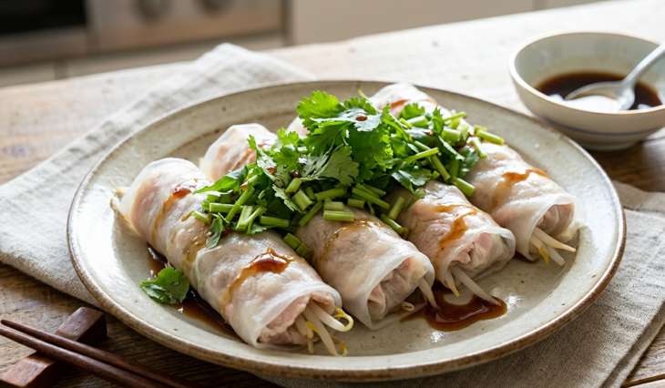 レンジで手軽に作れる、もちもちのライスペーパーで包んだもやしと豚肉のおかずです。