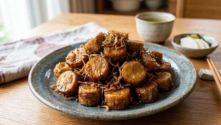 食感抜群のゴボウの揚げ煮の作り方です。七味唐辛子をトッピングしておつまみにするのも◎