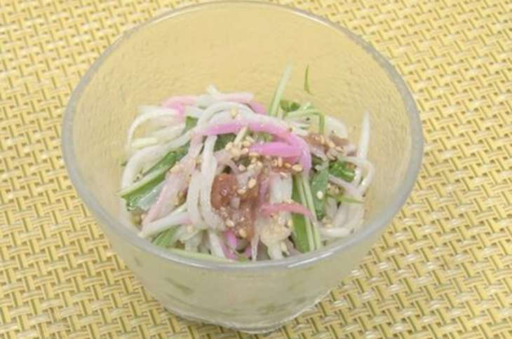 かまぼこ、大根、水菜、梅干し、梅ドレッシング、いりごま、柚子の皮