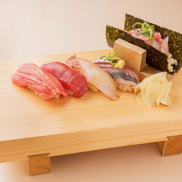 よるセットでおすすめは、マグロ・中トロ・いくら・ウニまでついた「握り7貫と追いかつおラーメン(2,300円)」◎