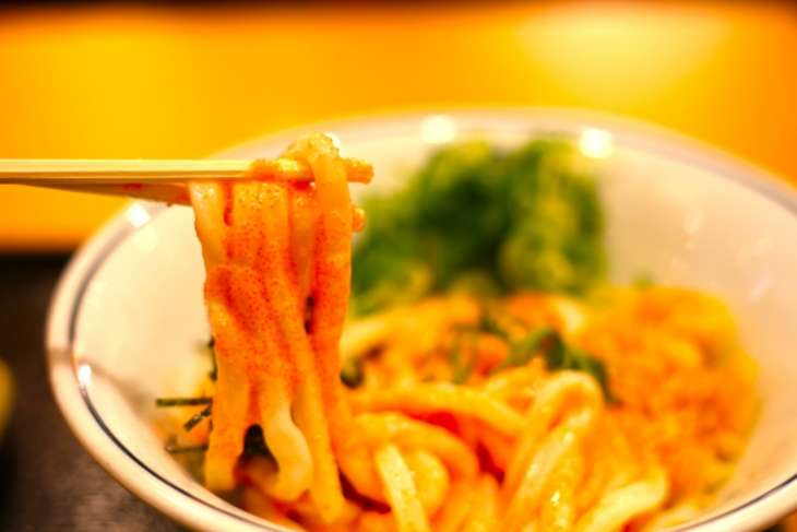 たっぷりの大葉と明太子でいただくお手軽うどん。