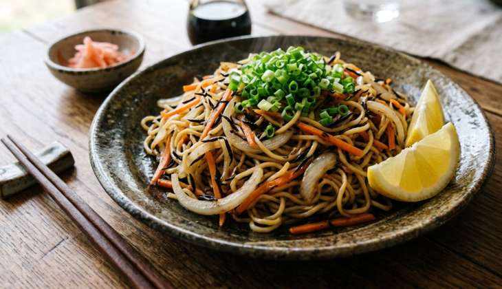 ヒジキ、新タマネギ、中華麺、ニンジン、油揚げ、万能ネギ、バター、サラダ油、レモン、酒、みりん、塩、コショウ、酒、水、ワサビ