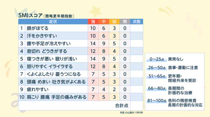 ご自身の更年期の症状の強さを調べることができるチェックリストです。